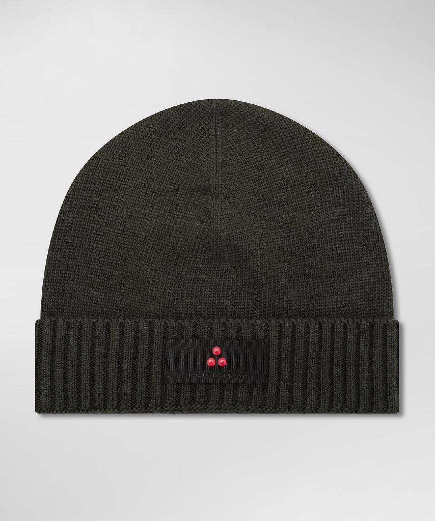 Caldo berretto in misto lana e cachemire, morbido e avvolgente, con risvolto a coste e l’iconico logo Peuterey trilogy sul davanti,