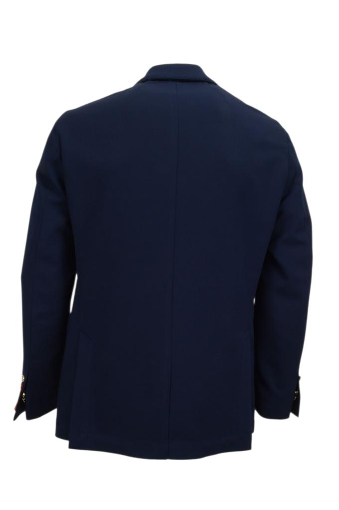 Giacca uomo Slim Fit imputura MF a riva bottoni dorati anni 80, tessuto in jersey disegnato in trama come il twill
