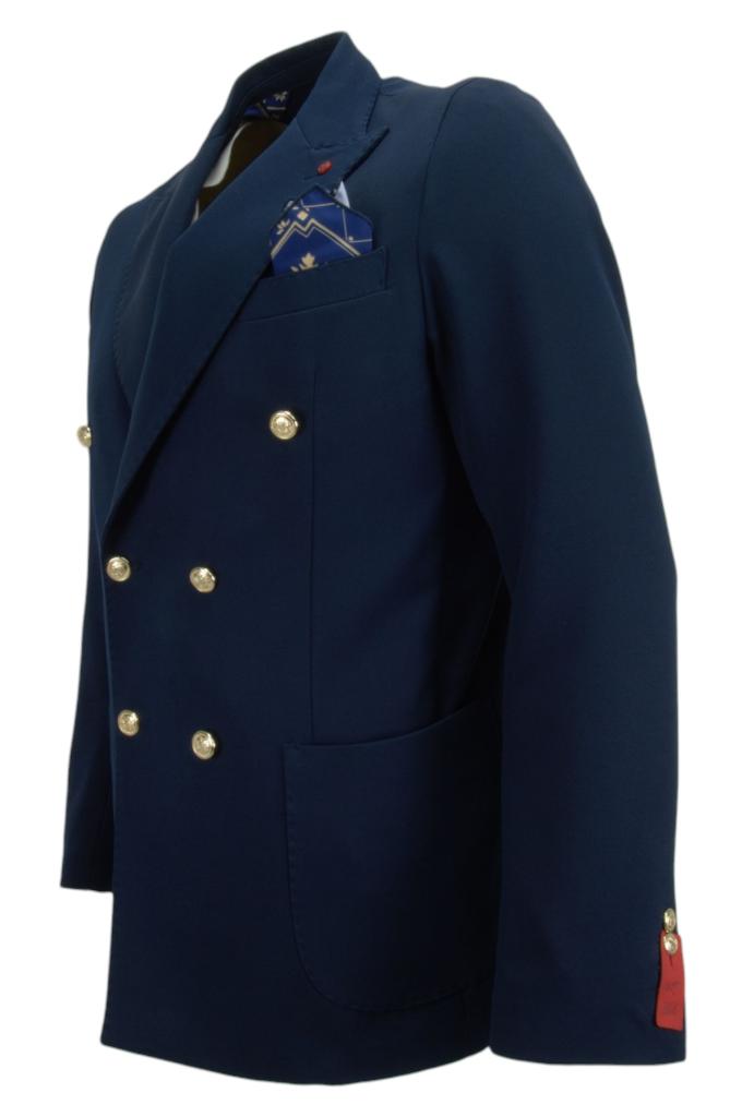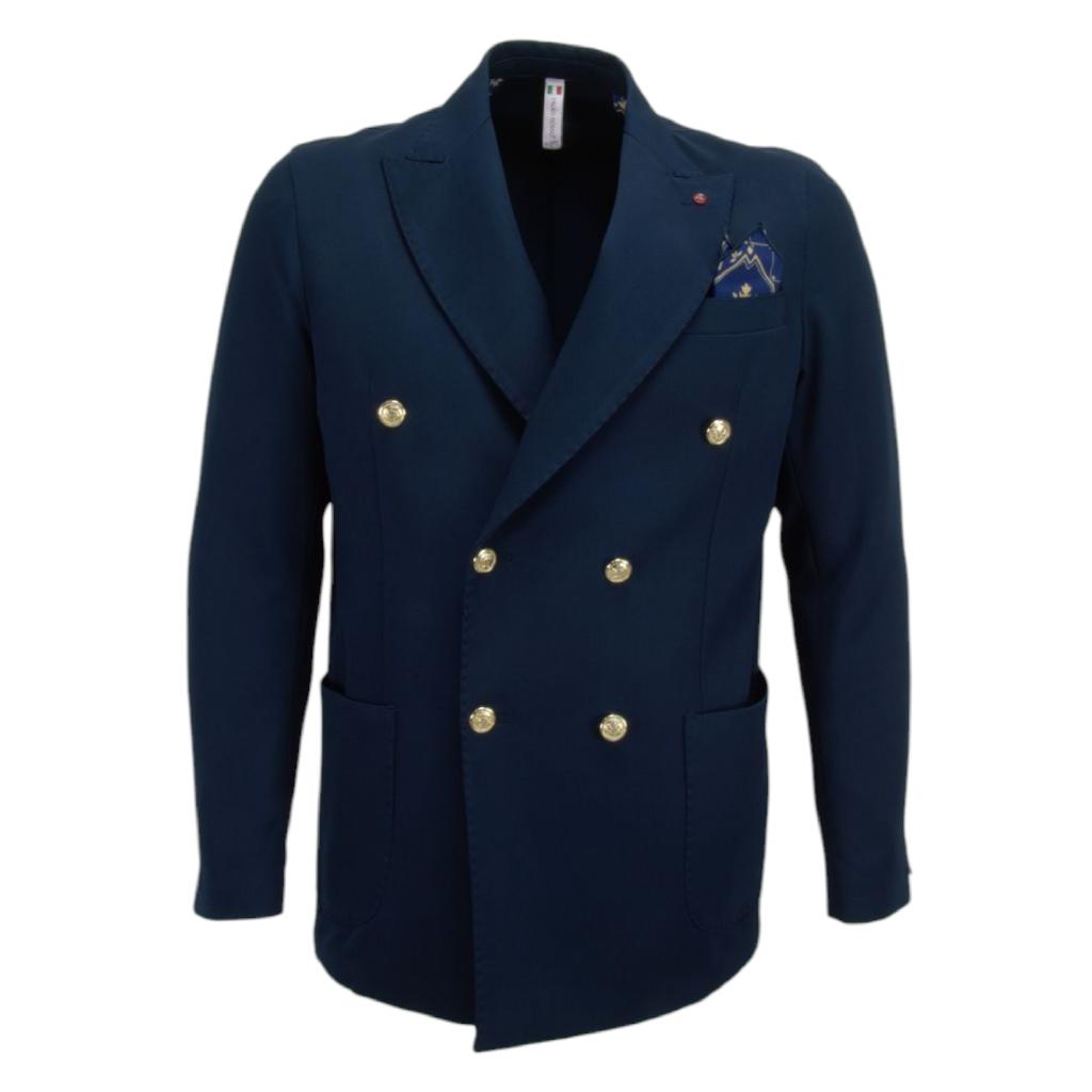 Giacca uomo tessuto cavalleri, trama disegno come il twill elasticizzata Slim Fit bottoni dorati Anni 80