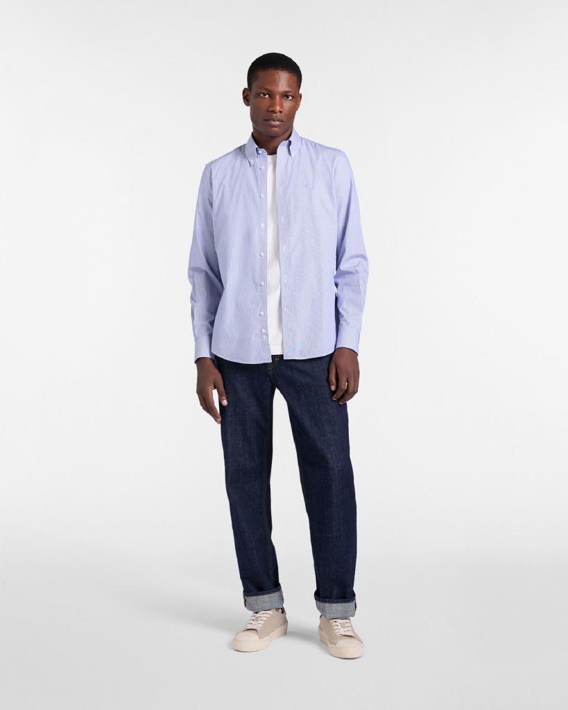 Camicia micro righe in puro cotone perfetta per offrire comfort e traspirabilità per tutta la giornata. Collo con bottoncini, bassotto