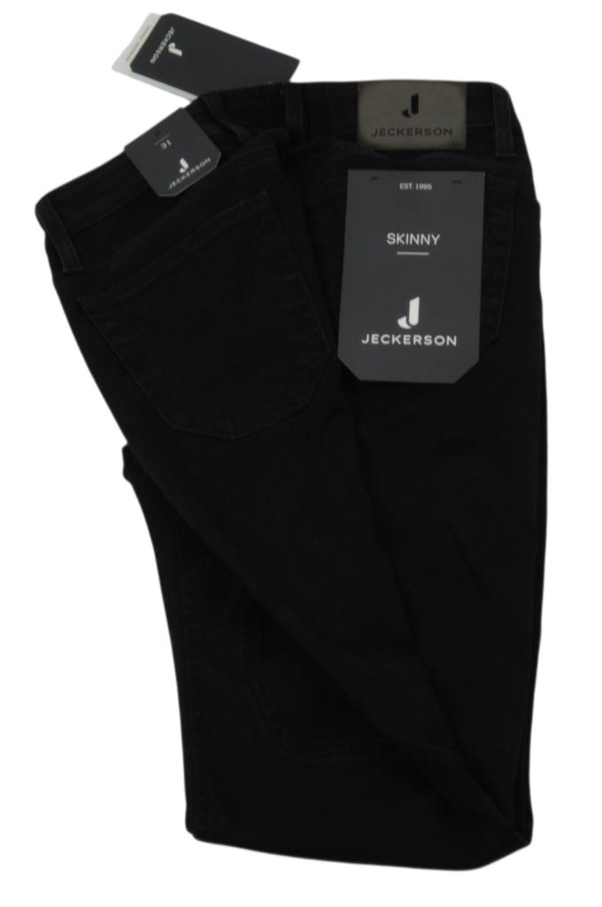 Splendido jeans firmato Jeckerson color nero skinny fit con toppe in jeans dello stesso colore.