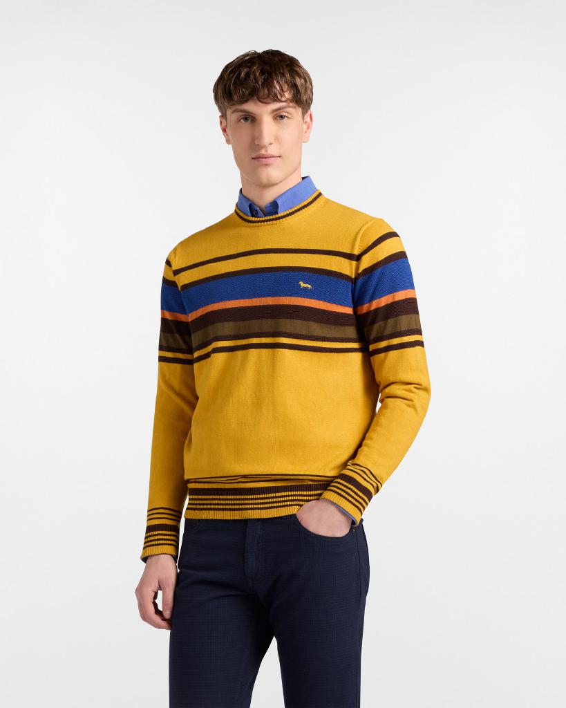Maglione per uomo di Harmont & Blaine con fantasia a righe orizzontali. Girocollo, maniche lunghe, costine. Regular fit.