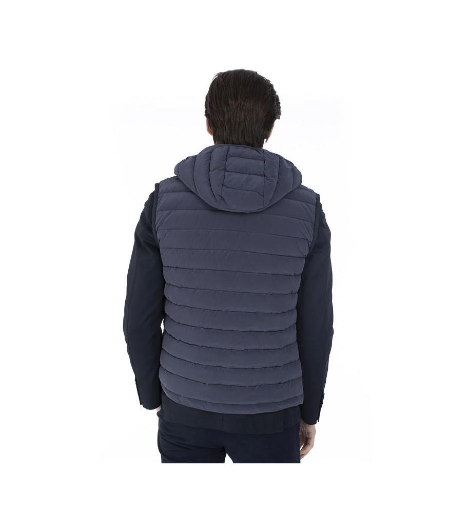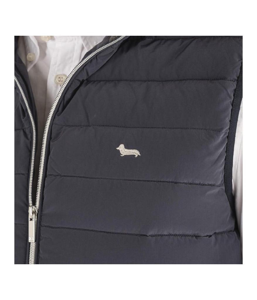 Gilet trapuntato firmato HARMONT & BLAINE in nylon tecnico, tinta unita con cappuccio,interno collo personalizzato, cerniera